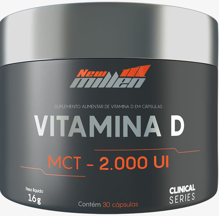 A Vitamina D da New Millen é um produto em cápsulas de fácil deglutição e tem como finalidade a oferta de vitamina D em quantidades adequadas para promoção de diversos benefícios ao organismo. Apresenta como veículo os triglicerídeos de cadeia média (MCT), que são capazes de aumentar sua absorção intestinal. É indicada para fortalecimento do sistema imunológico e melhora da saúde cardiovascular, óssea e hormonal.